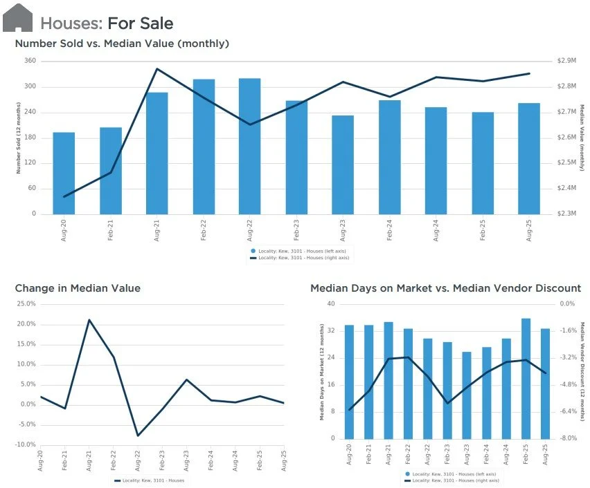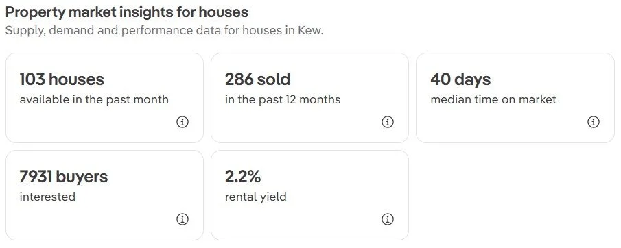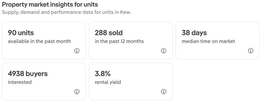 The size of Kew is approximately 10.5 square kilometres. It has 37 parks covering nearly 18.0% of total area. The population of Kew in 2016 was 24605 people. By 2021 the population was 24499 showing a population decline of 0.4% in the area during that time. The predominant age group in Kew is 50-59 years. Households in Kew are primarily couples with children and are likely to be repaying over $4000 per month on mortgage repayments. In general, people in Kew work in a professional occupation.In 2021, 68.50% of the homes in Kew were owner-occupied compared with 66.10% in 2016.