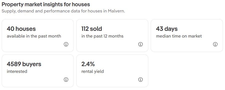 The size of Malvern is approximately 2.9 square kilometres. It has 9 parks covering nearly 4.4% of total area. The population of Malvern in 2016 was 10066 people. By 2021 the population was 9929 showing a population decline of 1.4% in the area during that time. The predominant age group in Malvern is 50-59 years. Households in Malvern are primarily couples with children and are likely to be repaying over $4000 per month on mortgage repayments. In general, people in Malvern work in a professional occupation. In 2021, 70.20% of the homes in Malvern were owner-occupied compared with 66.70% in 2016.