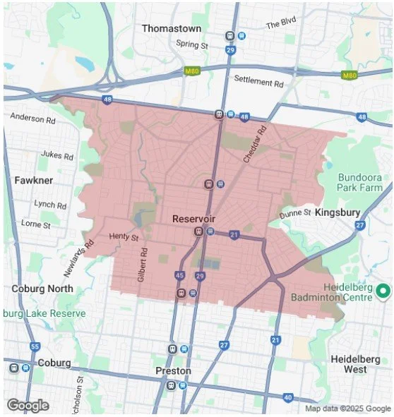 The size of Reservoir is approximately 18.9 square kilometres. It has 45 parks covering nearly 8.8% of total area. The population of Reservoir in 2016 was 50474 people. By 2021 the population was 51096 showing a population growth of 1.2% in the area during that time. The predominant age group in Reservoir is 30-39 years. Households in Reservoir are primarily couples with children and are likely to be repaying $1800 - $2399 per month on mortgage repayments. In general, people in Reservoir work in a professional occupation.In 2021, 59.90% of the homes in Reservoir were owner-occupied compared with 59.30% in 2016.