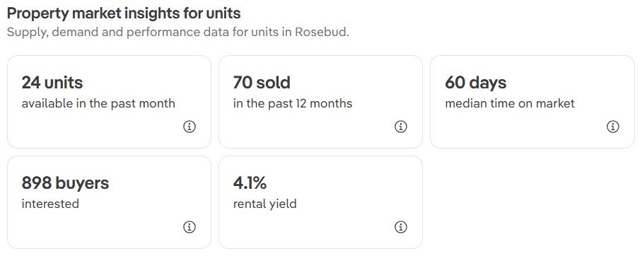 The size of Rosebud is approximately 17.1 square kilometres. It has 36 parks covering nearly 26.1% of total area. The population of Rosebud in 2016 was 13195 people. By 2021 the population was 14381 showing a population growth of 9.0% in the area during that time. The predominant age group in Rosebud is 60-69 years. Households in Rosebud are primarily childless couples and are likely to be repaying $1800 - $2399 per month on mortgage repayments. In general, people in Rosebud work in a trades occupation.In 2021, 69.60% of the homes in Rosebud were owner-occupied compared with 67.90% in 2016.