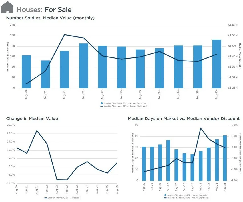 The size of Thornbury is approximately 5.1 square kilometres. It has 26 parks covering nearly 13.6% of total area. The population of Thornbury in 2016 was 18568 people. By 2021 the population was 19005 showing a population growth of 2.4% in the area during that time. The predominant age group in Thornbury is 30-39 years. Households in Thornbury are primarily couples with children and are likely to be repaying $1800 - $2399 per month on mortgage repayments. In general, people in Thornbury work in a professional occupation.In 2021, 55.90% of the homes in Thornbury were owner-occupied compared with 53.60% in 2016.
